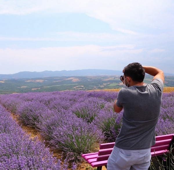 Bazı vatandaşlar da mor tarlalarda fotoğraf çektirmek için bölgeye geliyor.