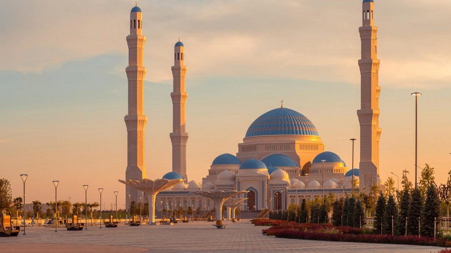 Cami, İslam mimarisi ile geleneksel Kazak motiflerinin bütünleştiği tasarımıyla dikkati çekiyor Yaklaşık 68 bin metrekare alana inşa edilen Büyük Nur Sultan Camisi, Orta Asya'nın en büyük camisi özelliğini taşıyor.